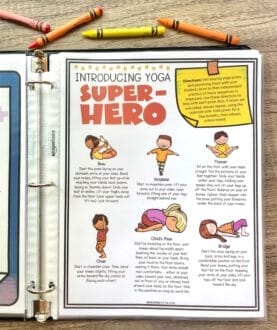 - Kid-friendly yoga breathing techniques as well as three kid-friendly series of yoga positions. Each of the yoga series has an adult page that describes how to do the position as well as a kid-friendly binder version to remind them of the positions so they can do them independently.
