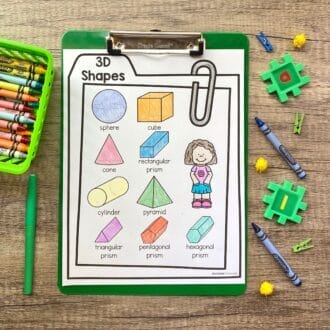 - Reference page with sphere, cube, cone, rectangular prism, cylinder, pyramid, triangular prism, pentagonal prism, and hexagonal prism