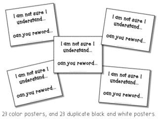 - Model Use: Start by modeling how to use the posters during class discussions. Demonstrate how to incorporate sentence stems into conversations, and encourage students to do the same.
