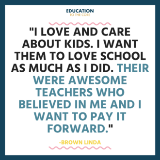 “I love and care about kids. I want them to love school as much as I did. There were awesome teachers who believed in me and I want to pay it forward.”