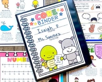 - CORE Binder – This is a resource that covers daily activities from classroom routines, math, and ELA. These Classroom Organizers and Resources for Education also include social and emotional tools because we know teaching isn’t all 123s and ABCs.Â