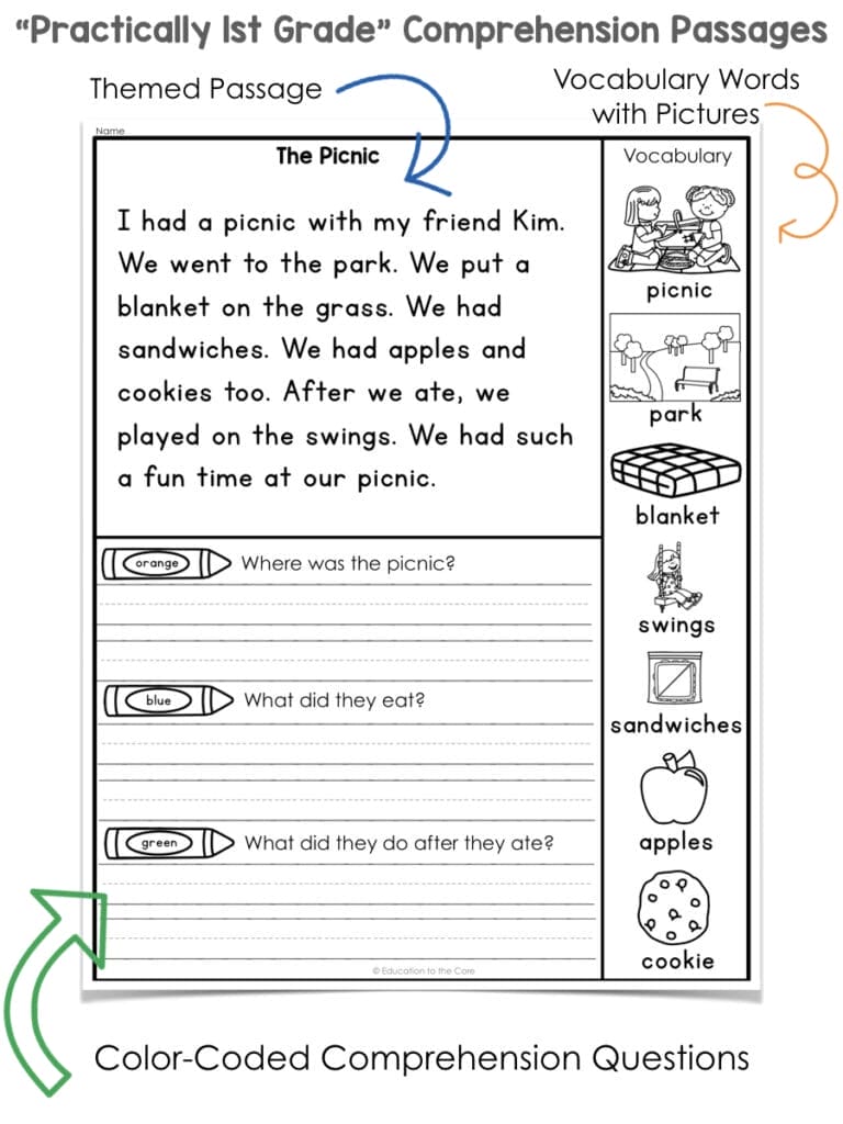 Hello, dedicated educators and supportive parents! Welcome to the world of “Practically First Grade” Passages, where the journey of reading becomes an exciting adventure for young learners. At Education to the Core, we are passionate about nurturing the curiosity and creativity of first graders through carefully crafted reading comprehension passages. Our mission is to provide you with printable resources that not only educate but also inspire a lifelong love for reading.