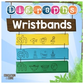 These Digraphs Wristbands can be used in a primary classroom as you introduce each digraph. Each wristband includes 3 pictures along with the word below the picture. These are created with six of the same wristbands on each page so you can print and cut easily so you can have a class set with less paper.