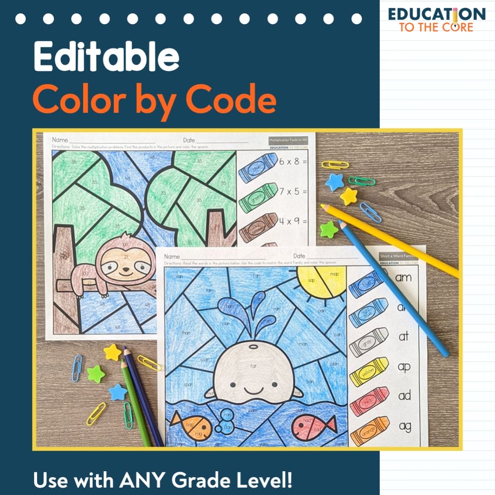 • 30 Editable Color by Code pages for use with ANY content area and ANY grade level