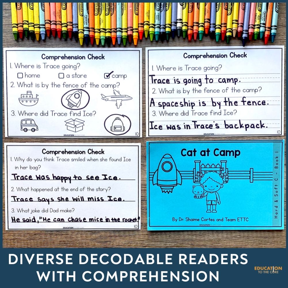 Our decodable readers offer an actual storyline to practice fluency right alongside the decoding practice and three levels of comprehension questions to meet your readers, no matter where they’re at. And for your older students who struggle with phonics? Our stories are high-interest, but easier readability for those students who need it. We’ve even included a set of higher-level thinking questions for those students who don’t need the extra reminder that they’re below level.