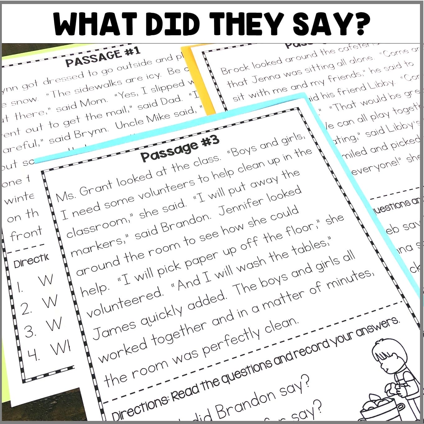 What Did They Say? Students will be reading passages and answering questions based on what the characters said in each passage.
