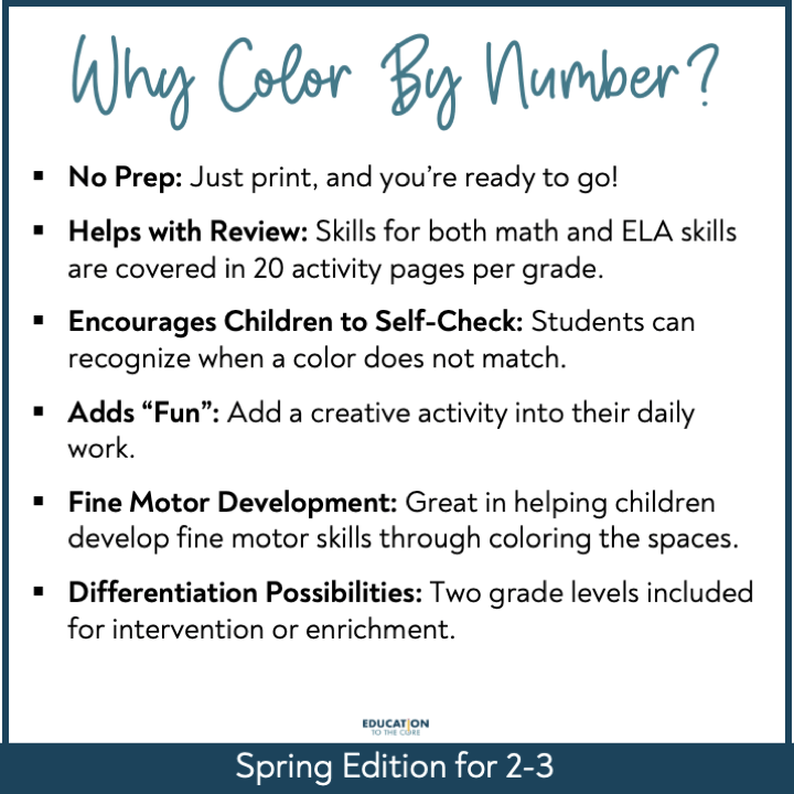 Are you looking for spring coloring worksheets? Trying to keep your students’ attention from wandering? We have the perfect solution – 40 no prep spring color by number activities that help your students practice ELA and Math skills.