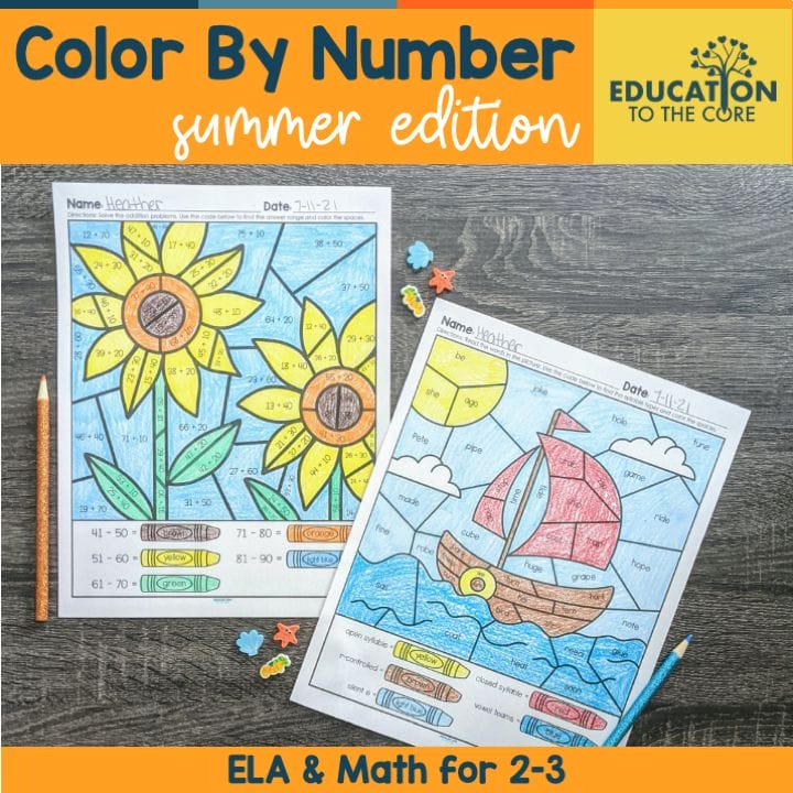 The Summer Color By Number bundle for 2nd and 3rd Grade contains no-stress printables created just for teachers who are looking for fun and engaging things for their students to do the first few weeks of school after summer break. All you need to do is print and go!