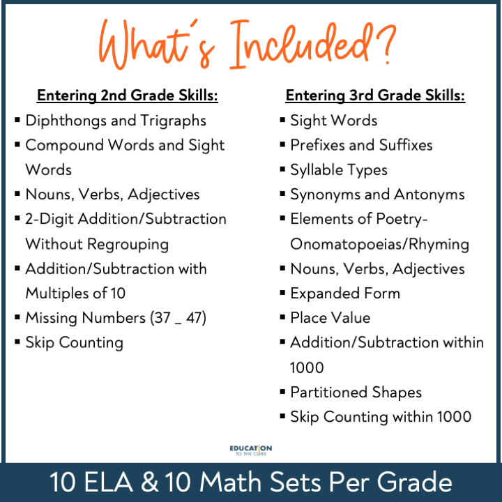 • Helps with Review: Skills for both math and ELA are covered in 20 activity pages per grade.