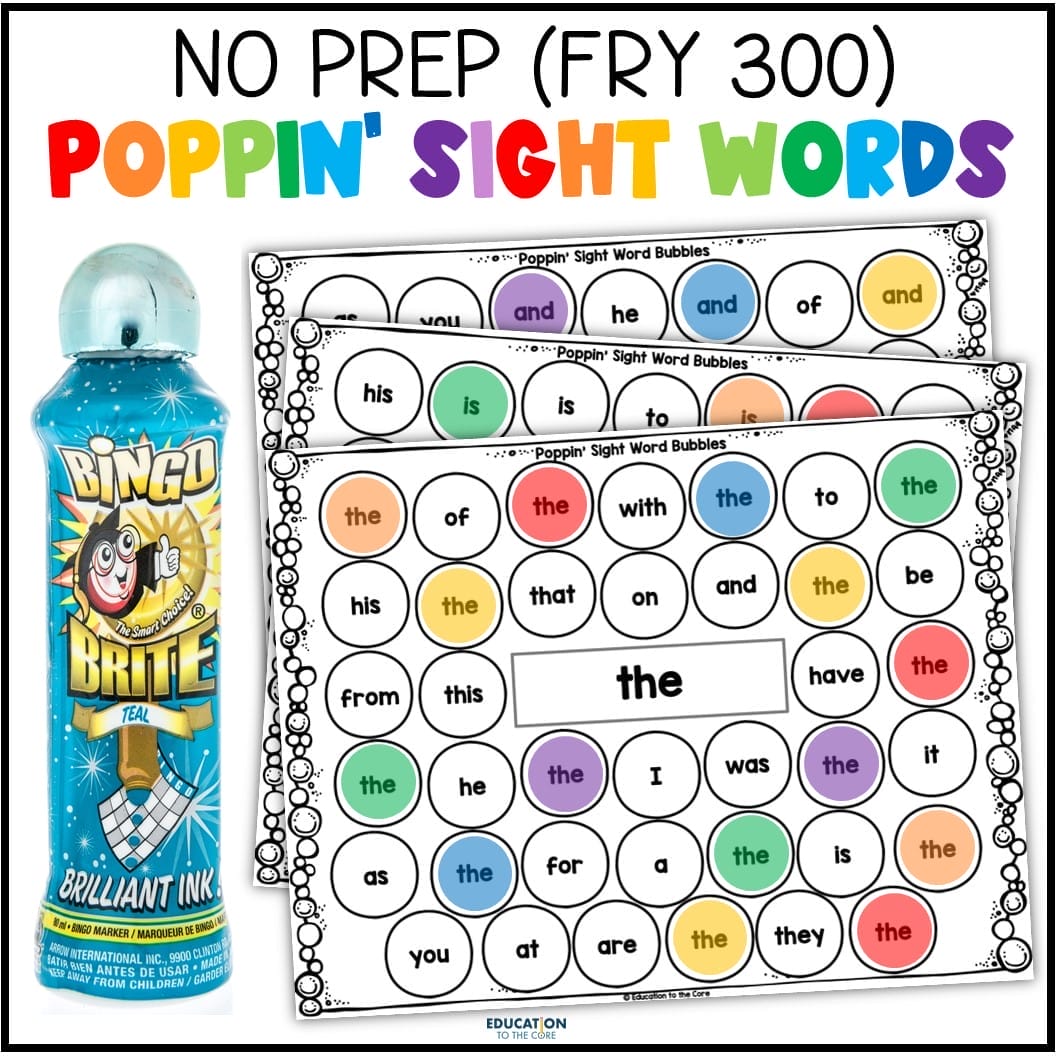 This “Poppin’ Sight Word Bubbles” center features the first Fry 300 Words!