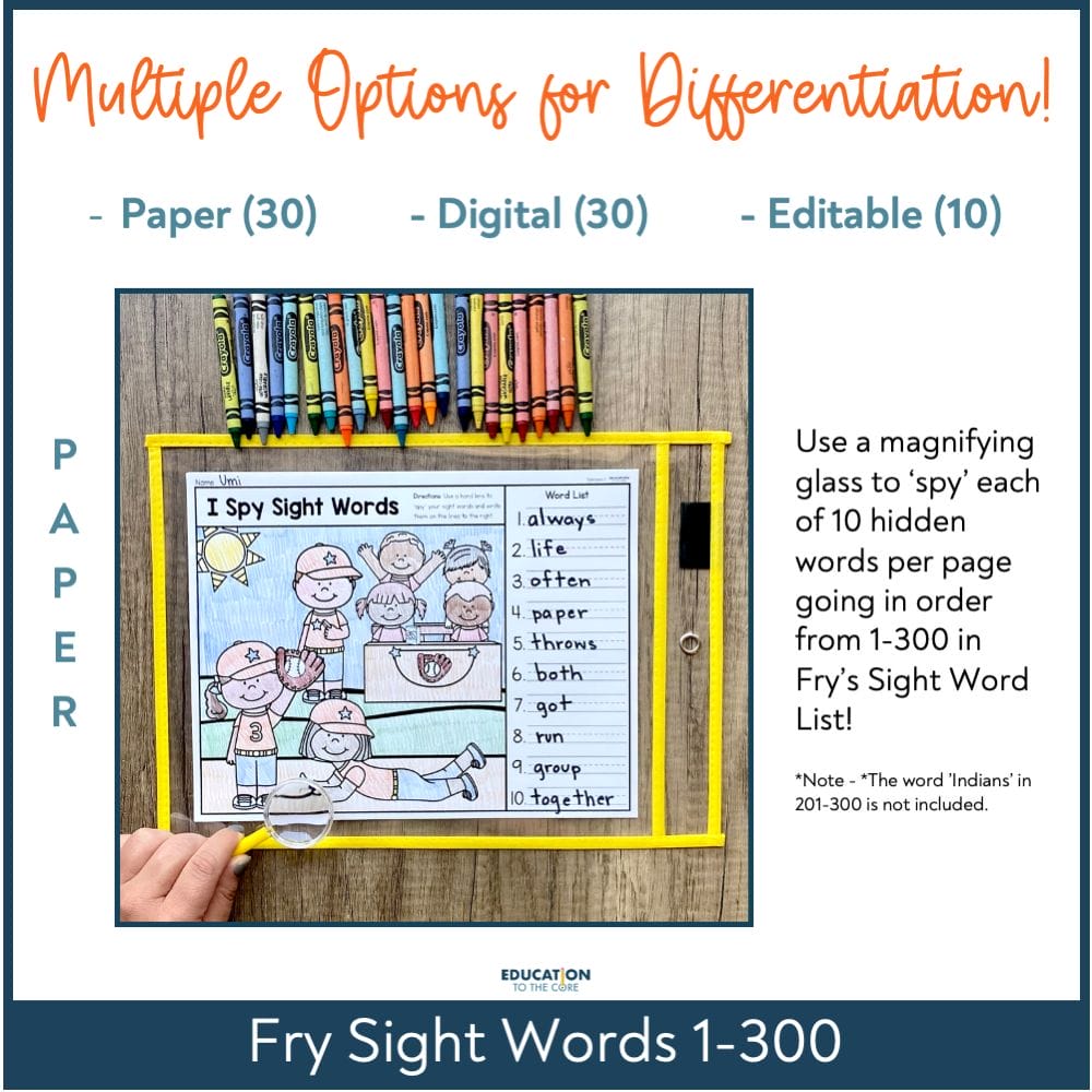 Don’t use Fry Sight Words, but love the idea of the resource? Don’t worry! We have included a paper (not digital) set of 10 images in an editable 3rd version so you can enter any 10 words you choose.