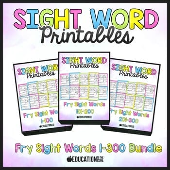 This FRY Sight Words Bundled Printable set contains printable activities for the first 300 sight words. (1-300) These can be used for whole/small group instruction, guided practice, or independent practice. In this pack, you will find the first three hundred sight words with 7 activities on each page.