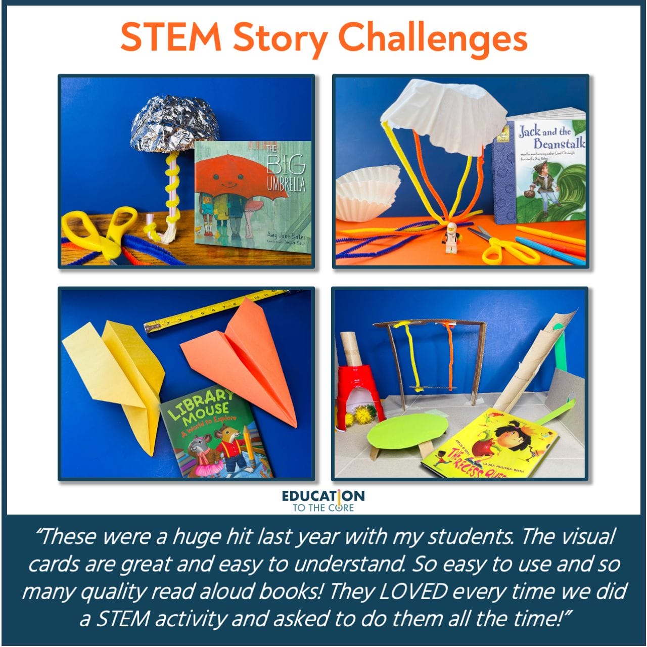 This “STEM and Story” resource includes 25 STEM challenges with storybook suggestions that can be used in whole group, small group, or center activities. Included are classroom posters, teacher guides, and student resources that will keep students engaged and actively participating in each STEM challenge.