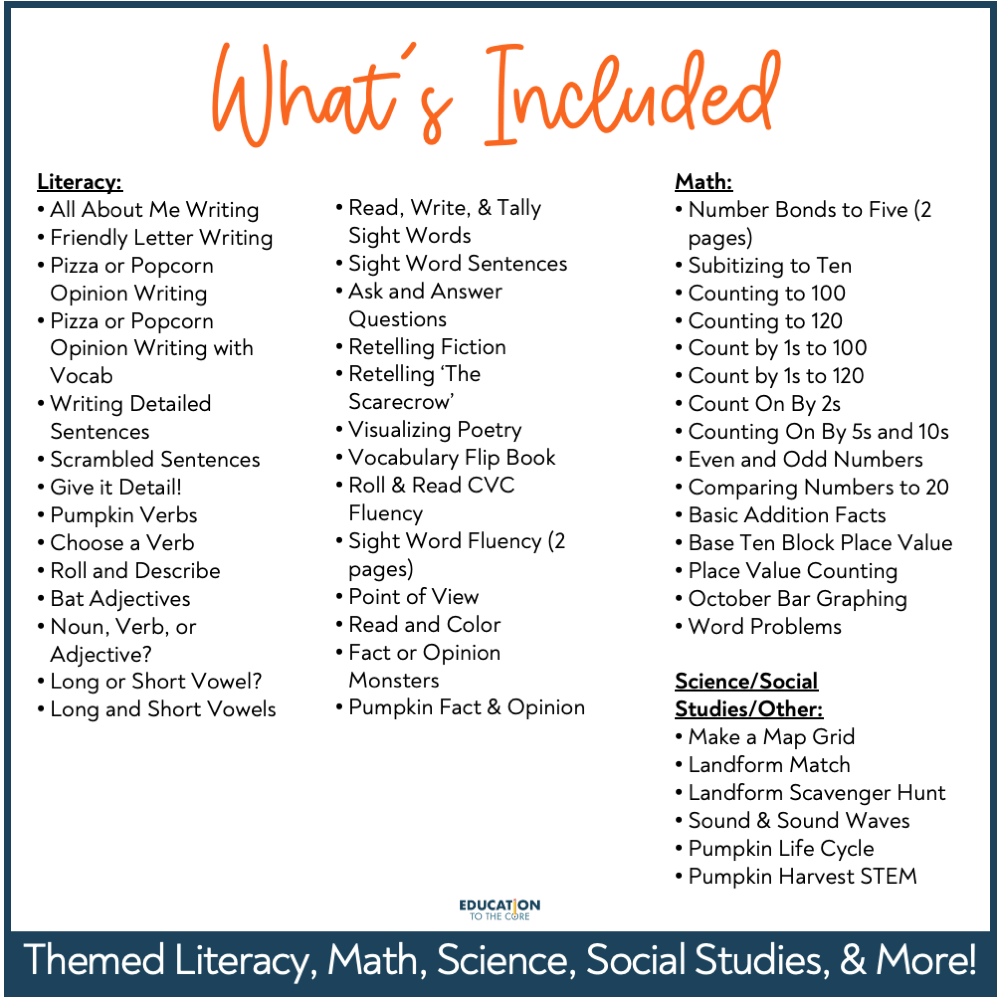 Introducing our October Monthly Packet for First Grade!
